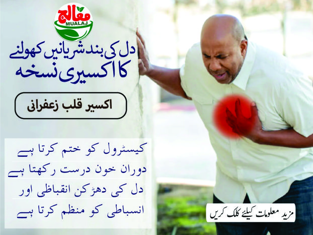 Read Moreنسخہ نمبر31اکسیر قلب زعفرانی:فوائد.کیسٹرول کو ختم کرتا ہے یورک ایسڈ بڑھنے سے روکتا ہے.دوران خون درست رکھتا ہے. دل کی دھڑکن انقباظی اور انسباطی کو منظم کرتا ہے.بلڈ پریشر کو کنٹرول کرتا ہے. موٹاپا ختم کرتا ہے.فالتو چربی (کیسٹرول) کو غیر محسوس طریقہ سے ختم کرتا ہے.گیس, قبض, بدہضمی کو دور کرتا ہے. جسم کو چست کرتا ہے.اس کے مسلسل استعمال سے سانس پھولنا, ہاتھ پاوں سن ہونا اور سوجنا ختم ہو جاتا ہے:اجزائے ترکیبیادرک دیسی. لہسن دیسی. لیموں دیسی تمام ہم وزن لے کر ان کا پانی نکال لیںشہد خالص, سرکہ سیب 1 پاؤسفید پیاز کا پانی 1 پاؤ, زعفران 6 ماشہچارچمچ ا گلاس پانی میں حل کر نہار منہ پئے:نوٹاستعمال کے 1/2 گھنٹے تک کھانے پینے سے پرھیز کریں:قیمت750 Gram for Rs 1800/-Cardiac Arrest TreatmentCardiac arrest generally happens when the supply of blood is not normal in arteries. And complete blockage of arteries can become the cause of heart attack. Shortness of breath, Chest Pain and Heart Attack are the symptoms of cardiac arrest. At Hakeem online we have the medical, herbal and pharmaceutical experts. You can consult your ailment with them they can give you expert opinions. Benefits: Reduces cholesterol level from body Prevents the growth of uric acid Regulates heart beat Controls blood pressure Eliminates Obesity Eliminates waste fat (cholesterol) in an unhealthy way Tightens the body Continuous use of it eliminates shortness of breath and swelling of hands & foot Removes gas, constipation and indigestionIngredients:Desi Ginger, Desi Garlic, Desi Lemon Take these products in equal quantity and drain their water. Pure Honey, Vinegar Apple 1 pound, 1 cup of white onion water and Saffron 6 mashDissolve four spoons in one glass of water and drink it daily