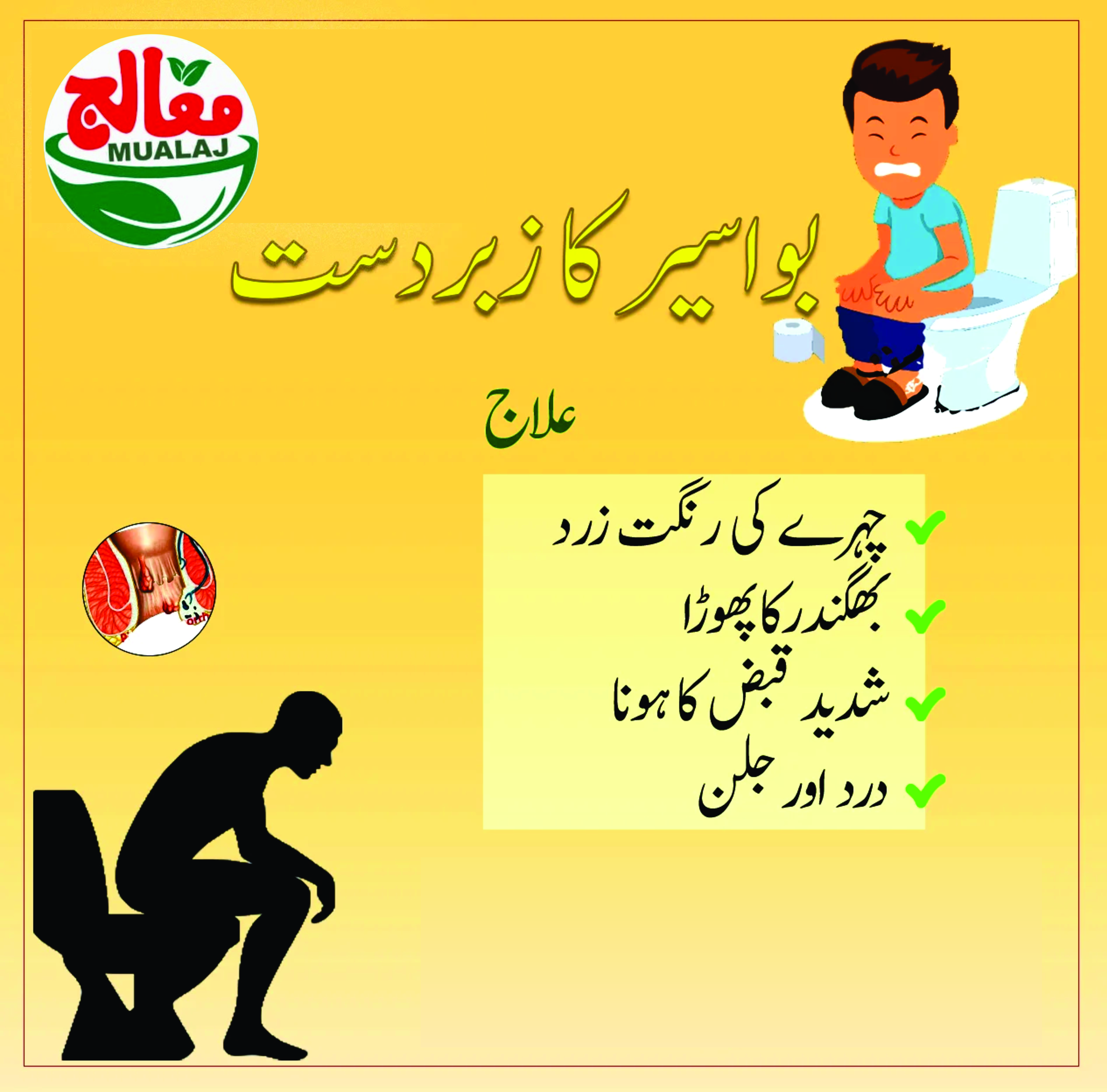 Read Moreجس طرح آتشکی زہر اور سوزاکی زہر ہوتا ہے اسی طرح بواسیری زہر بھی ہوتا ہے بنیادی طور پر بواسیر کو دو قسموں میں تقسیم کی جاتا ہےبادی اور خونیخونی اور بادی بواسیر کی علامات میں کچھ زیادہ فرق نہیں پایا جاتا ۔¤بواسیر کی دونوں اقسام میں مریض شدید قبض میں مبتلا ہو جاتا ہے۔مقعد کے منہ پر تیز جلن اور خارش ہوتی ہے¤براز کے اخراج میں تنگی اور تکلیف کا سامنا کرنا پڑتا ہے۔؎¤مریض کی بھوک ختم ہوجاتی ہے اور قوتِ ہاضمہ میں خرابی پیدا ہوکر معدہ میں جلن تبخیر،تیزابیت اور گیس پیدا ہونے لگتی ہے۔¤براز کے مکمل طور پر اخراج نہ ہونے سے اپھارہ سا ہو کر پیٹ پھو لا پھو لا رہتا ہے۔منہ سے بدبو آتی ہے۔چہرے کی رنگت زرد ہو جاتی ہےبواسیر کا مرض لاحق ہونے میں بہت سے عوامل شامل ہوتے ہیں۔ان میں موٹاپا، امراضِ معدہ،امراضِ جگر،انتڑیوں کی بیماریاں،دل کے امراض،دائمی قبض، مرغن، ترش اور بادی اشیاء کا زیادہ استعمال،تیز جلاب آور ادویات کا مسلسل کھانا ،خواتین میں دیگر اسباب کے ساتھ دورانِ حمل بھی بواسیر کا ذریعہ بن جاتا ہے۔منشیات،کولا مشروبات بیکری مصنوعات،بڑے گوشت کا تواتر سے استعمال، بیگن ،دال مسور،چائے اور سگریٹ نوشی کی کثرت بھی بواسیر کا باعث بنتا ہے۔علامات خونی بواسیرعمومی علامات سے تو تقریبا ہر بندہ واقف ہےخاص علامت ذکر کر رہا ہوںمقعد کے اندر درد ۔سوزش ۔خارش ۔ شدید جلن ۔مریض کا بیٹھنا مشکل ۔اس کی بنیادی وجہ مقعد کہ اندر یا باہر دانے بن جانا ۔اگر ان دانوں سے خون اور پیلے رنگ کا پانی خارج ہو تو اسے عمومی طور پر خونی بواسیر کہا جاتا ہےخونی بواسیر. میں خون اکثر پاخانے سے سے پہلے یا بعد. میں قطروں کی شکل میں آتا ہے اگر شدید قبض ھو تو زور لگانے پر دھار کی شکل میں خون آ سکتا ہےخونی بواسیر کی ایک علامات یہ بھی ہے کے خون کے خارج ہونے کے بعد سوزش اور وزن کی کیفیت میں کمی ھو جاتی ہے علامت بادی بواسیر بادی بواسیر میں خون تو نہیں آتا مگر شدید جلن اور درد کا احساس بڑھ جاتا اور مقعد کہ اندر اور باہر مسے بن جاتے ہیں اگر مسے چھوٹے سائز کے ہو دوائی کھانے سے بہت جلد ٹھیک ہوجاتے ہیں اگر مسوں کا سائز بڑھ جائے تو سرجری وغیرہ کروانی پڑتی ہیں خیر بواسیر خونی ہو یا بادی ان دونوں بواسیر کا مکمل علاج ہمارے پاس موجود ہے. قیمت ۔ پندرہ دن کی میڈیسن 1800۔